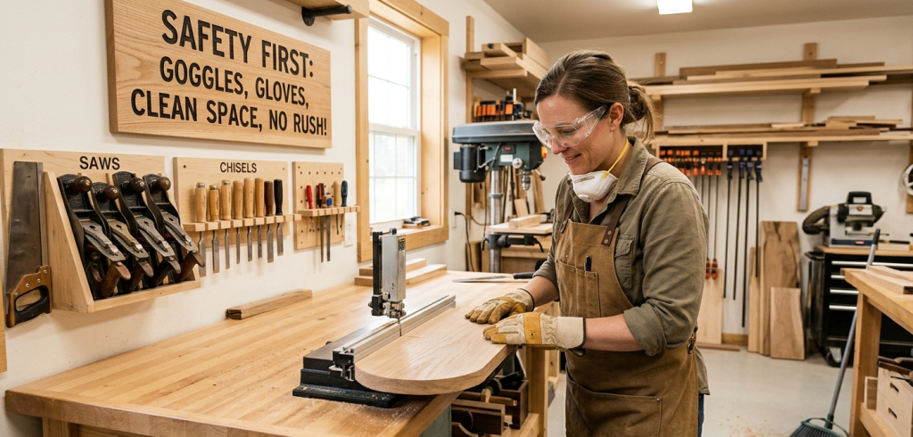 Always wear safety goggles to protect your eyes from dust and debris. Use gloves when necessary, especially when handling rough wood. Keep your workspace clean and organized to avoid accidents. Never rush your work, as mistakes often happen when you are in a hurry. Take the time to learn how to properly use each tool before using it.