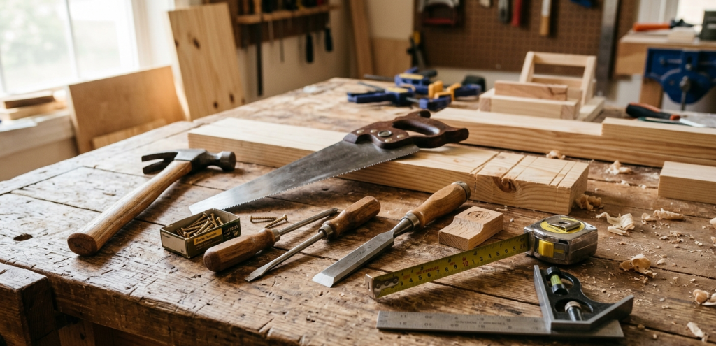Hand tools are the foundation of beginner woodworking projects. They are affordable, easy to use, and help you understand basic techniques.