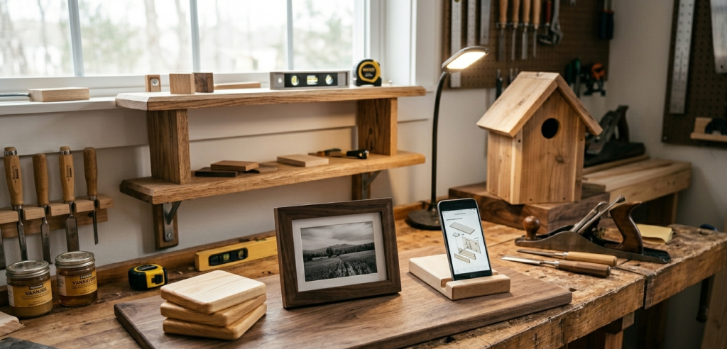 Wooden coasters are one of the easiest woodworking projects for beginners. They require minimal material and allow you to practice straight cuts and smooth sanding. This project also introduces finishing techniques such as applying oil or varnish, which are essential for protecting wood surfaces.